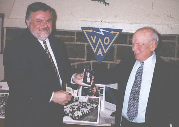 - VWOA honors two hams: The Veteran Wireless Operators Association has honored two hams for their contributions to the communications industry. The VWOA presented its Marconi Memorial Gold Medal of Achievement to Bob McNamara, N1KHF, and Alex Zimny. McNamara, the former chief of the FCC's Private Wireless Division (within the Wireless Telecommunications Bureau), now is director of regulatory technology and compliance for NEXTEL. Zimny directs the FCC's Compliance and Information Bureau in New York City. The Marconi Gold Medal has been presented annually since 1928 to those who have made significant contributions to the communications industry for advancement or promotion of the radio art. Both presentations were made at the VWOA awards banquet last May. --J. Michael Shaw, K2LRE