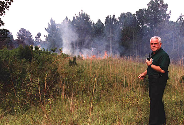 Norm Lauterette, WA4HYJ, keeps an eye on a new flareup in the Lake Geneva, Florida, fire the weekend of June 6-7.