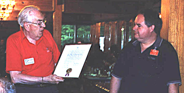 Al Fischer, KC4RIB, presents the Georgia General Assembly's Amateur Radio Weekend proclamation to North Fulton Amateur Radio League President Steve Mays, KS4KJ