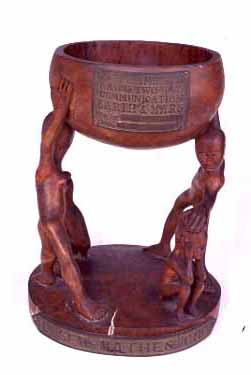The actual trophy selected by Elser and Mathes during a trip to Baguio is an example of Igorot native woodcarving. "The base symbolizes Earth and the seated figures are its inhabitants," Elser explained in QST. "The bowl is Mars, and the standing men are the amateurs who bridge the gap of space." The plate fastened to the cup includes space for the names and call signs of those who will one day fulfill the cups eventual destiny. (In the meantime, if you'd like to send your name to Mars, visit http://spacekids.hq.nasa.gov/2001/).