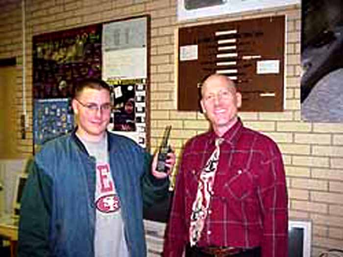 Ian Snell, KD7EPH (left), a member of the Payson High School ARC with Reed Thompson, N7YVJ, a faculty member. Snell got his ticket through a class at the school taught by Robert Strange, K7VVU. [Courtesy of Robert Strange, K7VVU] |