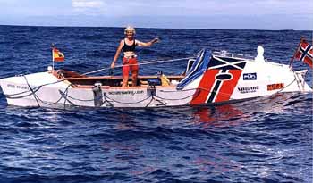 On November 12 and still 1000 miles from her goal, bad weather, wind and sea conditions forced Hoff to put out her sea anchor and remain almost stationary. Hoff's husband, Stein, in Norway sent her position to Trudi Smyth, 8P6QM, who runs the Transatlantic Maritime Mobile Net. 8P6QM relayed the information to Geoff Green, G3ZNV/mm, who was crossing the Atlantic aboard the 617-foot luxury MSY Wind Surf, also bound for Barbados.