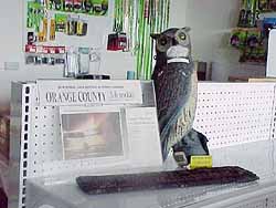 - Why is this woman smiling? Manager Janet Margelli, KL7MF, stands in the doorway of the newly reopened HRO store in Anaheim, California, at what's being called a "semi-interim" location. The original Anaheim store was destroyed by fire January 23. The new location opened March 1, just up the street from the old site. The old store is to be rebuilt. HRO is maintaining the 933 N Euclid mailing/shipping address, and the telephone numbers remain the same. The only item recovered from inside the HRO store was a plastic owl decoy--sold to scare birds away from towers and beams--that now has become the store's new mascot. Here, "Smokey" stands next to a newspaper front page about the fire.