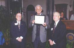 - NN3SI volunteers honored: John Swafford, W4HU (left) and ARRL Vice President Hugh Turnbull, W3ABC (right) recently accepted a certificate from Secretary Michael Heyman recognizing the contribution of volunteers to the operation of Amateur Radio station NN3SI at the Smithsonian Museum of American History in Washington, DC. "The ham radio exhibit is unique in that when the station is being operated, it has a live body there," Turnbull said. The occasion was the Smithsonian's annual Behind-the Scenes Volunteer Program Appreciation event. Turnbull explains that NN3SI originally was a special event station for the US Bicentennial in 1976, and past ARRL President Vic Clark, W4KFC, was the trustee. Turnbull took over when Clark died, and he was instrumental in getting the station established as a permanent club station and exhibit. The station's visitor's log is signed by several thousand hams each year.--Hugh Turnbull, W3ABC