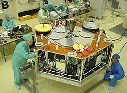 AMSAT News Service says the RUDAK computer team, the RF team and members of the electronics team from AMSAT-NA already have completed their work and returned home. Electronics team members from Europe this week were wrapping up their tasks and preparing to leave. Five of the six bays around the satellite's circumference have been secured for the final time; the sixth bay has been prepared to load fuel. Thermal blanket additions have also been completed. Final tests have been made on several detectors--such as the sun sensor--and the solar cells were being mounted on the satellite and will be connected to the battery chargers.