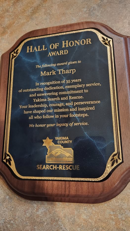 Mark Tharp, KB7HDX, Director of the ARRL Northwestern Division, has received the Hall of Honor Award for 35 years of service to the Yakima Search and Rescue group.