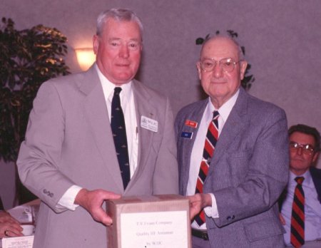 Tom Evans, W1JC (left), donates an antenna to Phil D'Agostino, W1KSC, trustee of W1BV. - Schweitzer Institute gets antenna: The non-profit Albert Schweitzer Institute for the Humanities in Wallingford, Connecticut, has accepted the donation of an antenna for its proposed new ham station, which will operate as W1BV. Accepting the gift November 8 was station trustee Philip D'Agostino, W1KSC. Antenna manufacturer Thomas Evans, W1JC, donated the antenna, a G5RV design. The donation ceremony was held recently during a regular luncheon meeting of the local QCWA chapter. Plans call for the Schweitzer Institute to use W1BV in carrying out its disaster relief and humanitarian efforts. By the way, W1BV will be on the air January 18 as a special event station commemorating Schweitzer's birth.--Al Cohen, W1FXQ