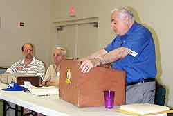 Rep. Michael Bilirakis (R-FL) addresses Hams in Palm Harbor, Florida. West Central Florida Section Manager Dave Armbrust, AE4MR, is at the extreme left with an unidentified Lighthouse ARC member. [Paul Toth, NA4AR] - Florida hams meet with Spectrum Protection Act sponsor: Members of the West Central Florida Section leadership met with US Rep Michael Bilirakis (R-Clearwater) April 15 to discuss the future of Amateur Radio and the impact of federal regulation. Rep. Bilirakis is the author and chief sponsor of HR 783, the Amateur Radio Spectrum Protection Act. The bill, current under consideration by a House Committee, would require the FCC to allocate comparable radio spectrum to the Amateur Radio Service in exchange for any current allocations the Commission may decide to auction off or reallocate to another service. Rep Bilirakis commended Amateur Radio operators for their continued commitment to public service in their communities. He cited the role Amateur Radio played in the recent rescue of Willem van Tuijl, shot and seriously injured when his family's sailboat was attacked by pirates off the coast of Honduras. "This was Amateur Radio at its finest," Bilirakis told the group. West Central Florida Section Manager Dave Armbrust, AE4MR, outlined the growing concern about the impact of deed restrictions and restrictive covenants on Amateur Radio. "We must find a way to give these operators and those who wish to become hams the opportunity to perform public service and emergency communications unimpaired by these artificial barriers," he said. The ARRL has petitioned the FCC to expand the scope of PRB-1 to include restrictive covenants. ARRL Southeastern Division Assistant Director Paul Toth, NA4AR, called on Bilirakis to support that change. The meeting was hosted by the Lighthouse Amateur Radio Club.