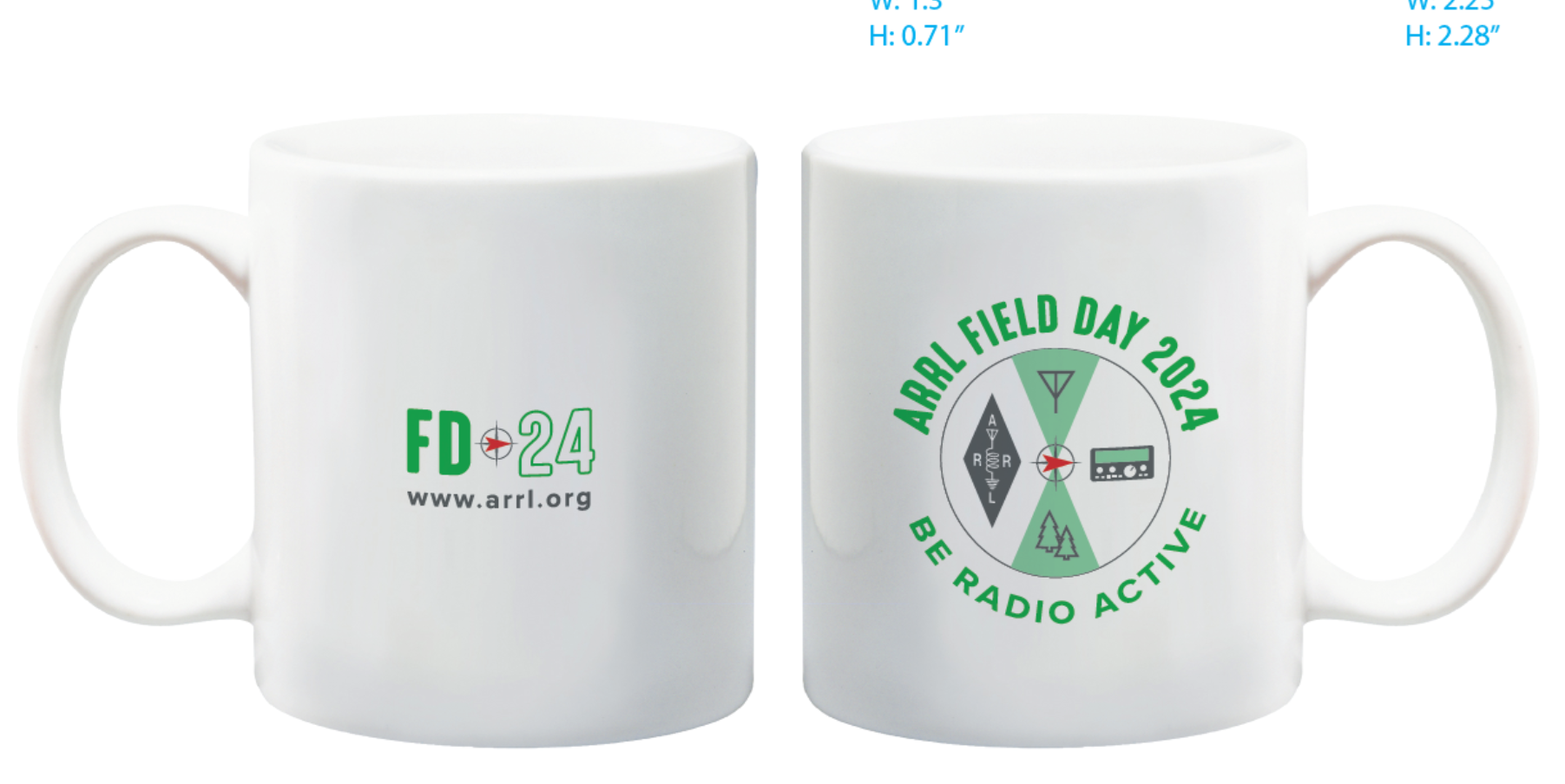 ARRL Field Day is June 22-23. Get ready for amateur radio's largest on-air operating event with official 2024 ARRL Field Day merchandise, now available. T-shirts, hats, mugs, pins, patches, and more are a great way to show off your involvement in this annual event. This year's design features the theme "Be Radio Active." The back of the t-shirt includes a check-off list of ARRL and RAC Sections - a fun way to keep track of your Field Day contacts.