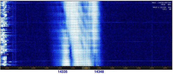 IARUMS has also reported digital signals attributed to the Israeli Navy on 7,107 and 7,150 kHz. In addition, a Russian military F1B signal was observed in mid-November on 7,179 kHz. A Russian over-the-horizon radar has returned to 20 meters on 14,335 – 14,348 kHz. It was monitored on November 22. Earlier this fall, IARUMS reported digital signals from the Polish military daily on 7,001.8 kHz where Amateur Radio has a worldwide primary allocation. Telecommunications officials in Germany filed a complaint.