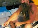 Hogue used a 100 W radio powered from deep-cycle marine batteries, a G5RV antenna on shore and a fiberglass vertical antenna on his charter boat. He kept a handwritten log on a piece of cardboard.