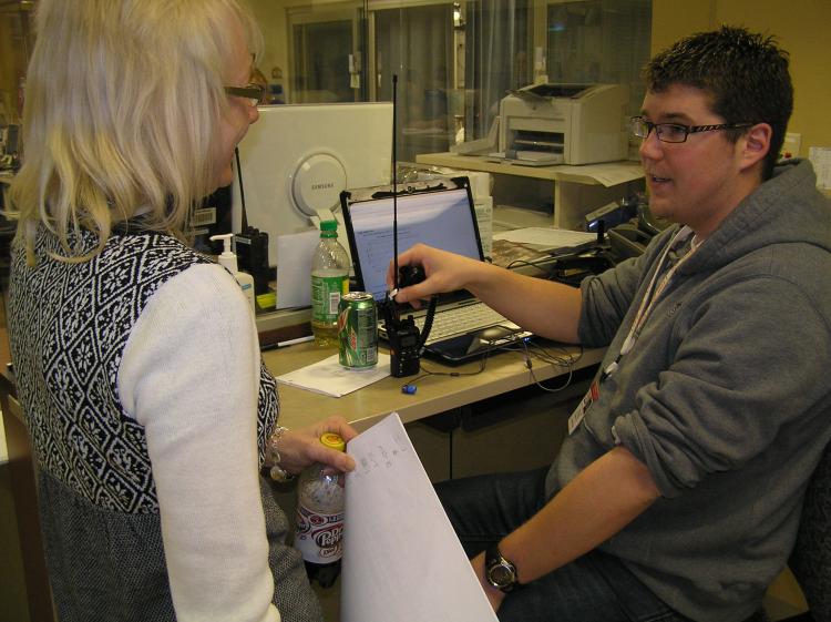 ![For part of the RRRA's communications support, Beck was stationed at Innovis Hospital in Fargo. Here, he talks with hospital personnel about the flloding. [Val Tareski, K0QYW, Photo]](/img/130x97/exact/News/nms_808.jpg)