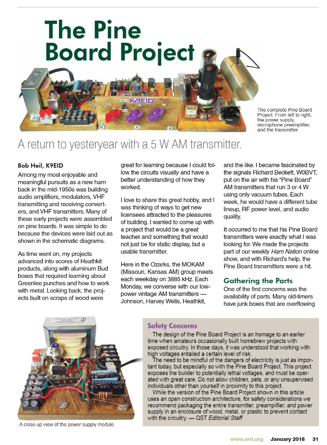 The winning article for the January 2018 QST Cover Plaque award is “The Pine Board Project” by Bob Heil, K9EID. The QST Cover Plaque Award -- given to the author or authors of the most popular article in each issue -- is determined by a vote of ARRL members on the QST Cover Plaque Poll web page. Cast a ballot for your favorite article in the February issue today.