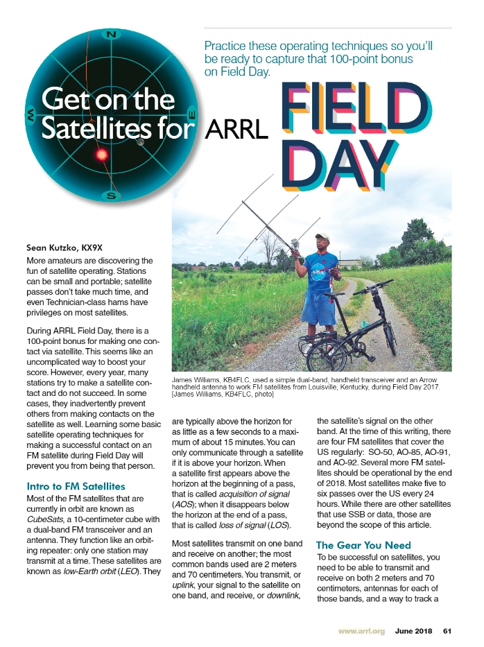 The winning article for the June 2018 QST Cover Plaque award is “Get on the Satellites for ARRL Field Day” by Sean Kutzko, KX9X. The QST Cover Plaque Award -- given to the author or authors of the most popular article in each issue -- is determined by a vote of ARRL members on the QST Cover Plaque Poll web page. Cast a ballot for your favorite article in the July issue today.