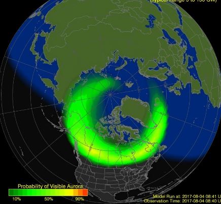 NOAA’s Space Weather Prediction Center (SWPC) has issued a G2 (moderate) geomagnetic storm watch for August 4, and a G1 (minor) watch for August 5.