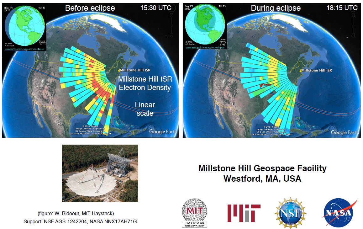 “We saw a 2X reduction in electron density during the eclipse for at least 45 minutes to 1 hour,” Erickson told ARRL. “This reduction had direct impacts on HF propagation along the bottom side.” Erickson said many models and observations exist from previous eclipses that demonstrate these effects. Erickson said MIT researchers used a “megawatt-class Thomson scatter radar” which can directly measure the plasma state of the ionosphere, including electron density, across a huge area in the eastern US.