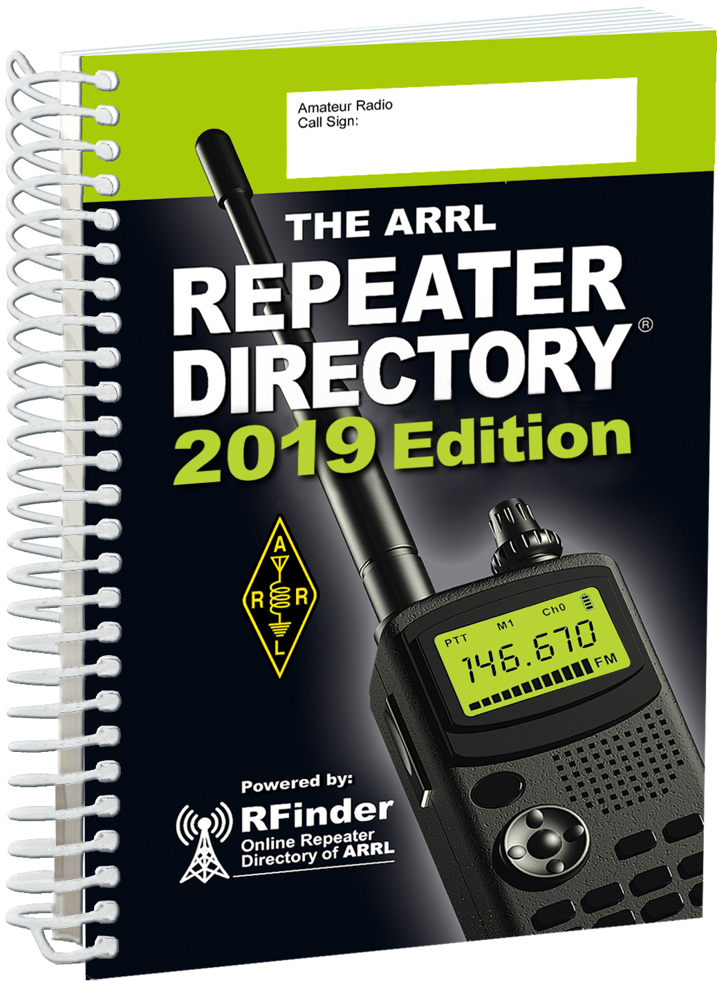 The 2019 ARRL Repeater Directory is now shipping. Order from the ARRL Store, or find an ARRL publication dealer; ARRL Item No. 1045, ISBN: 978-1-62595-104-5, $19.95 retail; ARRL member price $17.95. For additional questions or ordering, call 860-594-0355 (toll-free in the US, 888-277-5289).