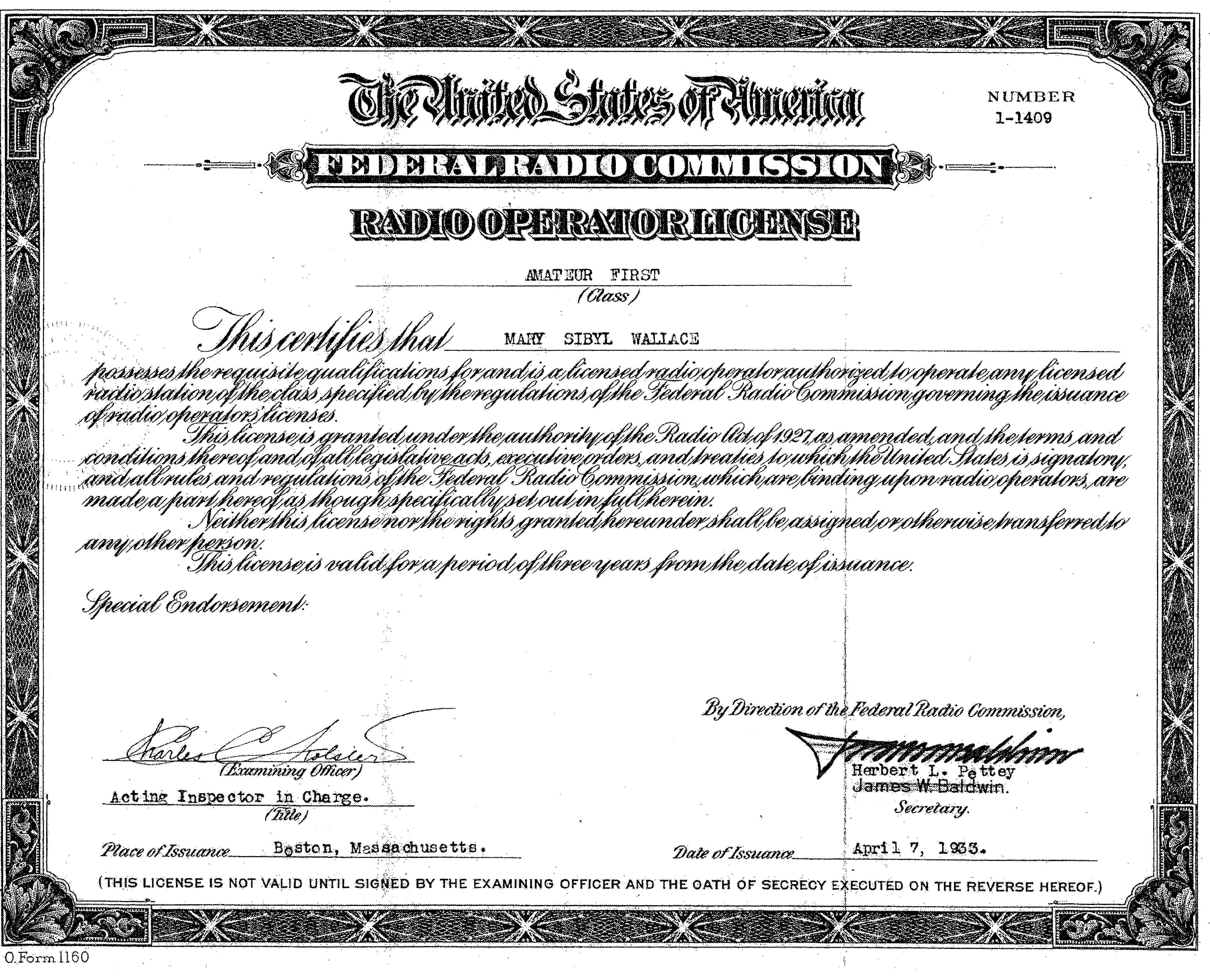 Mary Cousins, ex-W1GSC, who was the first woman in Maine to obtain an Amateur Radio license, celebrated her 108th birthday on September 20. Now a resident of a care facility in the coastal fishing village of Deer Isle, Cousins was treated to a party complete with a cake decorated with images of local newspaper articles from 1908, the year she was born. The confection also bore an image of her 1933 “Amateur First” radio license — issued to Mary Sibyl Wallace, her maiden name, by the old Federal Radio Commission, when Cousins was 24. The FCC came into being the following year. Cousins’ old call sign has since been reissued at least once. Cousins said she operated Morse, although she does not remember the code anymore, and used to relay weather information in that mode.