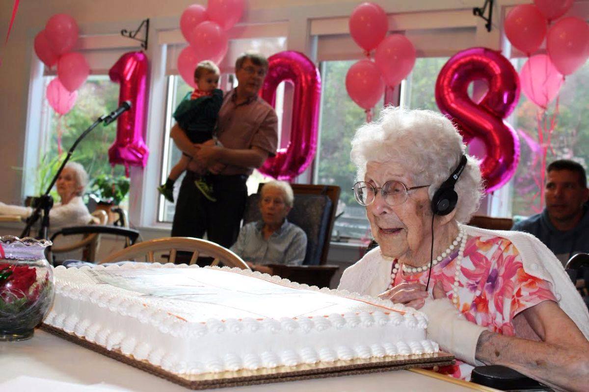 Her cake also bore images of Stonington as it looked in 1908, when Teddy Roosevelt was the US president. Enlivening the party were 108 balloons and live piano music. Cousins received and read cards from many well-wishers, including US Sen Susan Collins.