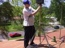Uh oh, he's in motion again. I can hear the tools clanging and some shuffling. He's getting up. He's walking. Sounds like the mast is going up again. Yes, he's definitely putting up the mast.