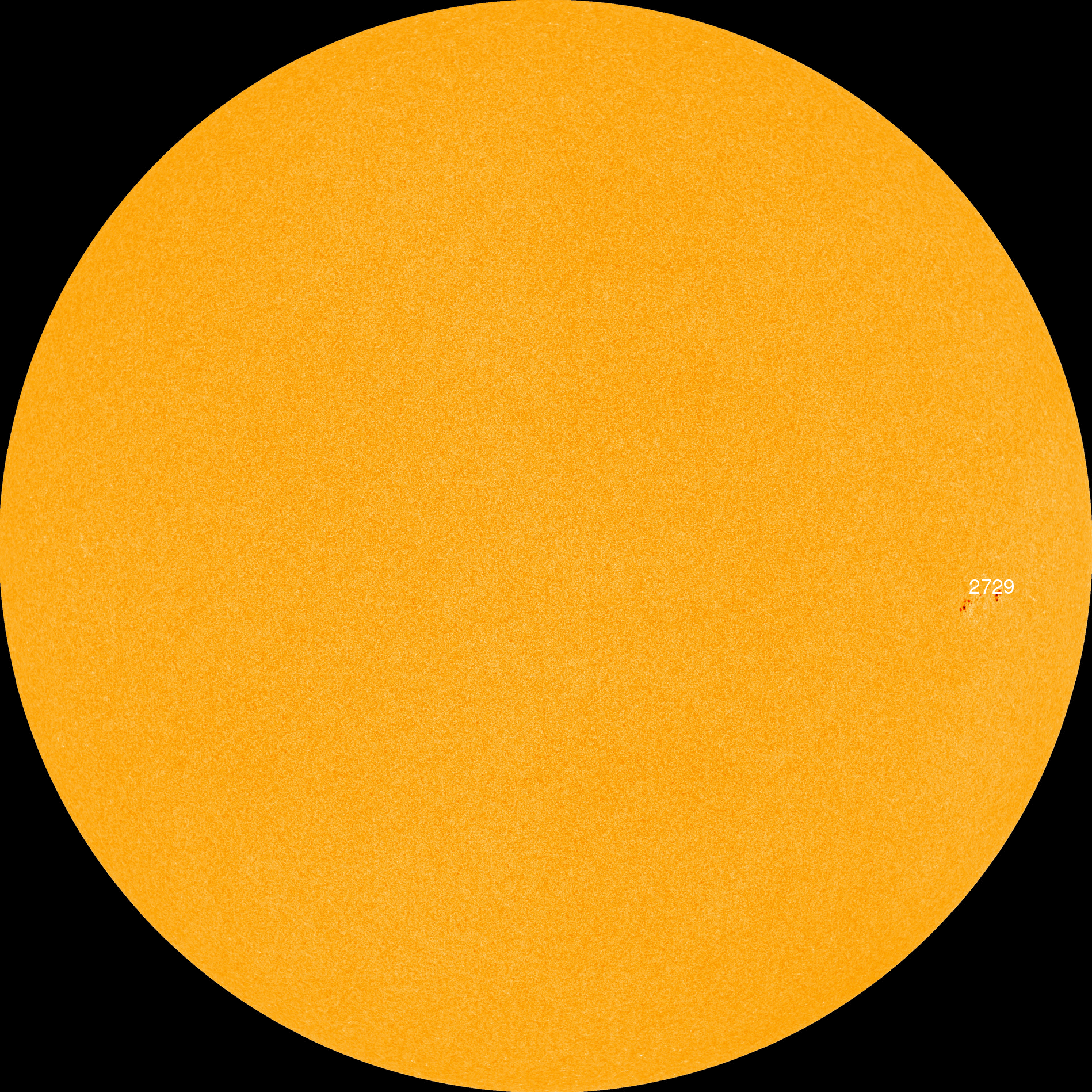 After nine days with no sunspots, sunspot group 2729 emerged on December 5. The sunspot number on that date was 16. Average daily solar flux for the week was 68.9, unchanged from last week. On Thursday, December 6 the appearance of 2729 continued, with a sunspot number of 17 and the sunspot area increasing from 30 to 50 millionths of a solar hemisphere.