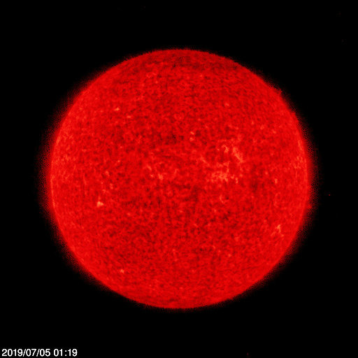 Sunspot numbers for June 27 through July 3, 2019 were 11, 0, 0, 0, 0, 0, and 0, with a mean of 1.6. The 10.7-centimeter flux was 67, 68.1, 67.6, 67.4, 68.2, 67.3, and 66.9, with a mean of 67.5. Estimated planetary A indices were 4, 4, 3, 4, 9, 5, and 5, with a mean of 4.9. Middle latitude A index was 4, 5, 3, 3, 10, 5, and 6, with a mean of 5.1.