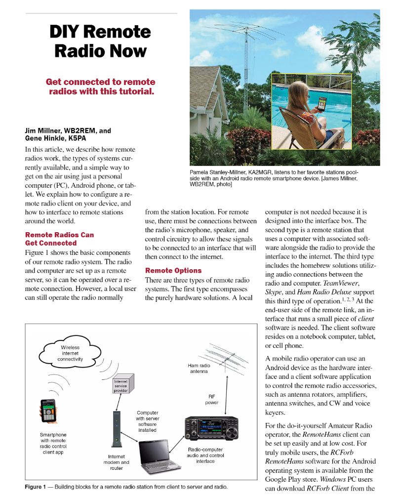 The winning article for the April 2017 QST Cover Plaque award is “DIY Remote Radio Now” by Jim Millner, WB2REM, and Gene Hinkle, K5PA. The QST Cover Plaque Award -- given to the author or authors of the most popular article in each issue -- is determined by a vote of ARRL members on the QST Cover Plaque Poll web page. Cast a ballot for your favorite article in the May issue today.