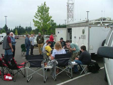 When Cabela's was first approached about the Camp Murray RACES team operating in their parking lot they were a bit apprehensive until they found out that we were a volunteer organization and not employees of the State of Washington. Out in the parking lot we had a number of visitors stop by asking about what we were doing and there were a number of amateur radio operators that stopped by who expressed an interest in finding out more about emergency communications.