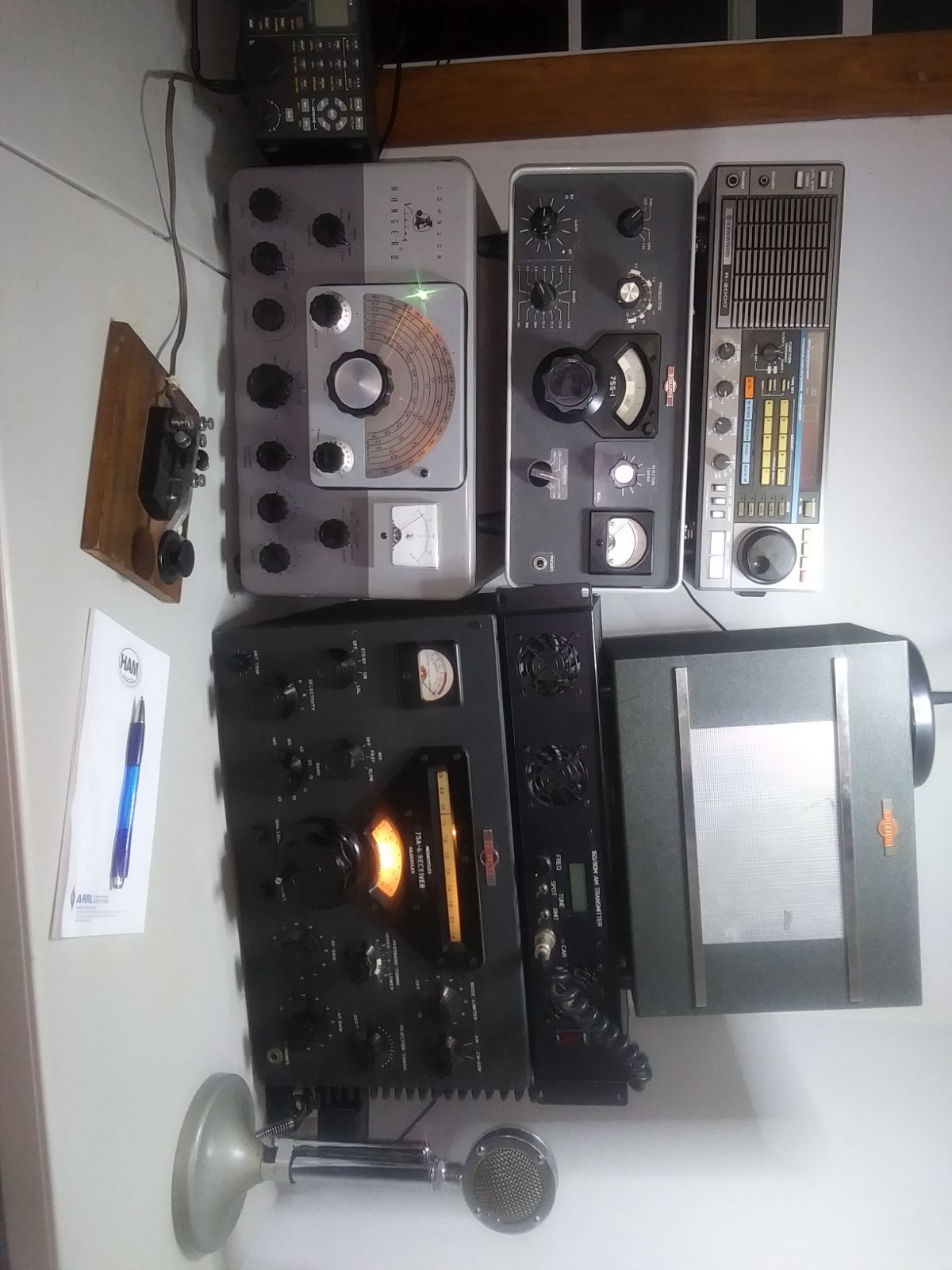 Below is a picture of my station A TX E.F. Johnson Ranger 2 RX Collins 75A4 Ant two half waves in phase fed with open wire line. Key is my E.F. Johnson Speed-X with navy knob I purchased in 1965 from World Radio Labs with money saved from my paper route.